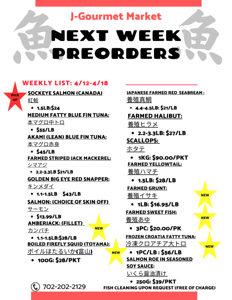 Weekly Pre-Order Seafoods - 4/25(Sat) Pickup